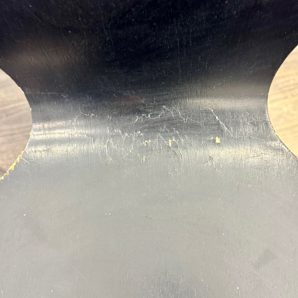 La coque de l'assise, peinte en noir, est faite de couches et le cadre chromé est empilable.