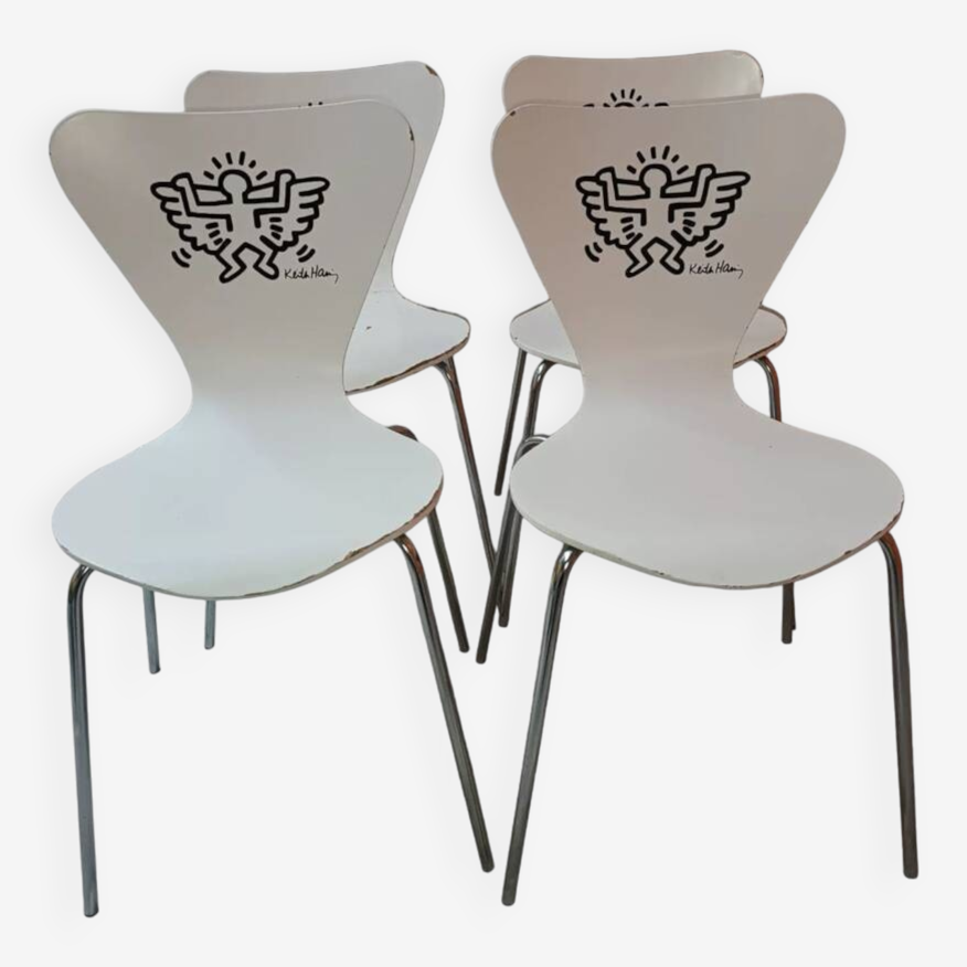 Lot de 4 chaises Keith Haring d'Arne Jacobsen pour Firtz Hansen